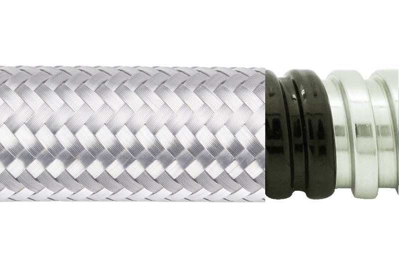 電氣保護金屬軟管 (EMI 防護) - PAG13PVCSB 系列, 由鍍鋅鋼單勾軟管外加聚氯乙烯 (PVC) 塑料防水層及不銹鋼絲編織網(wǎng)構(gòu)成, 是 EMI 防護系列產(chǎn)品中保護等級再提升的設(shè)計, 尺寸系統(tǒng)迎合亞洲市場普遍使用的規(guī)格。全系列產(chǎn)品具備優(yōu)良的機械特性及防水防塵性, 編織層額外提升耐磨性, 在可能存有電磁干擾問題的環(huán)境中, 提供基本的 EMI 防護功能。聚氯乙烯塑料護套同時具有阻燃性, 本系列金屬軟管亦屬于低火險型的產(chǎn)品。全部材質(zhì)符合 RoHS--危害物質(zhì)禁用指令, 滿足環(huán)保產(chǎn)品要求。
