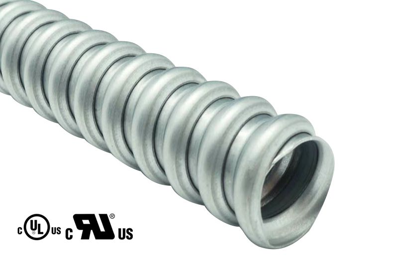 可撓性金屬軟管 - PRWG, 全系列尺寸通過(guò)美國(guó) UL 實(shí)驗(yàn)室依標(biāo)準(zhǔn)檢驗(yàn), 取得認(rèn)證, 屬于薄壁型鍍鋅鋼軟管系列產(chǎn)品??蓳闲越饘佘浌芤藻冧\鋼帶卷繞制成, 材質(zhì)具有耐腐蝕特性, 符合 RoHs 環(huán)保規(guī)定, 其柔軟性, 抗拉及耐沖擊性能完全符合 UL 標(biāo)準(zhǔn), 同時(shí)滿足 NEC 電氣配線施工要求, 做為供電、通訊和訊號(hào)傳輸?shù)鹊雀黝惥€纜的鎧裝保護(hù)。